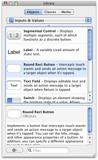 Round Rect Button をドラッグアンドドロップして貼り付けます。