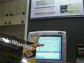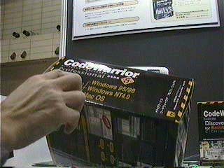 (説明してくださった方)あのその辺最近ですね、まあこの辺は今デスクトップ向けの製品なんですけども、一応CodeWarrior自体はあの組み込み系のものですとか、ゲーム機向けのものとか、いろんな種類出してまして、最近あのそっちの方の比率かなり上がってきてるんですけど、そうですね、そういったえーと組み込み向けの方ですと、えーといろいろカーナビですとかPDAですとか、あのセットトップボックスですか、いわゆるテレビまあこれからいろいろ新しいの出てくると思うんですけれど、その辺の組み込みとかの開発で良く使われています。 |